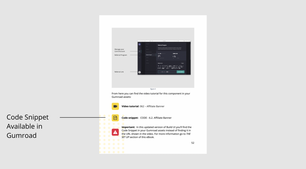 Tutorial Videos: When there’s a video available for the components’ tutorial you’ll find it referenced on the Ebook so you can look it up on your Gumroad downloads